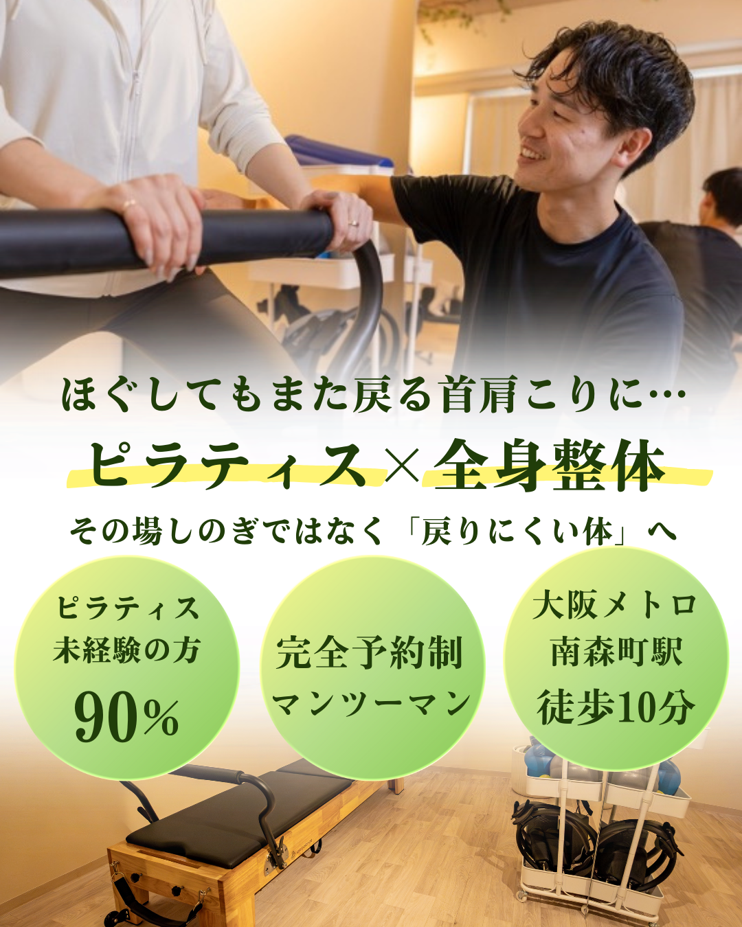 一緒に受けていただくことで、ピラティスの効果を最大限に高められるため、当サロンでは整体とピラティスの組み合わせが一番のオススメです。